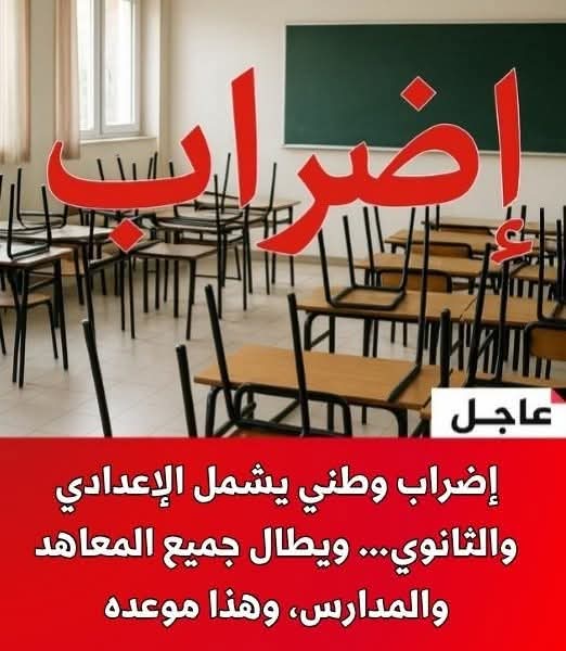 🔴عااااجل/ إضراب وطني يشمل الإعدادي والثانوي ويطال جميع المعاهد والمدارس، وهذا موعده…